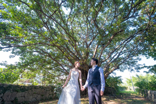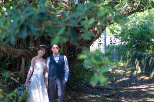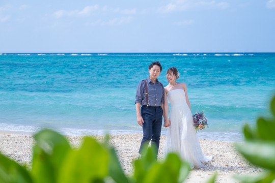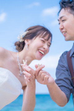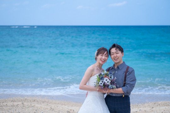 実は宮古島に数年間お住まいになられていた新郎様。当時のお話しもお伺いでき、とても楽しい時間を共有させていただきました。また共通の趣味であるアニメのポーズをした写真もおふたりらしくて、ouchi的ヒット写真!そんなおふたりの撮れたてほやほやのお写真を公開しています。