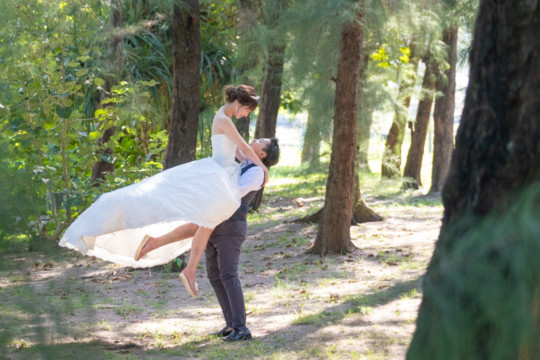 お着替え中、シャツを広いあげる瞬間に腰をやってしまったことをフォトウェディングが終わるまで隠し通し、お姫様抱っこまでやり遂げた優しい新郎様。いや、マイケルジャクソンのスリラーショットまで・・・。(笑)