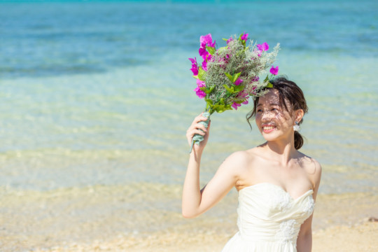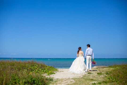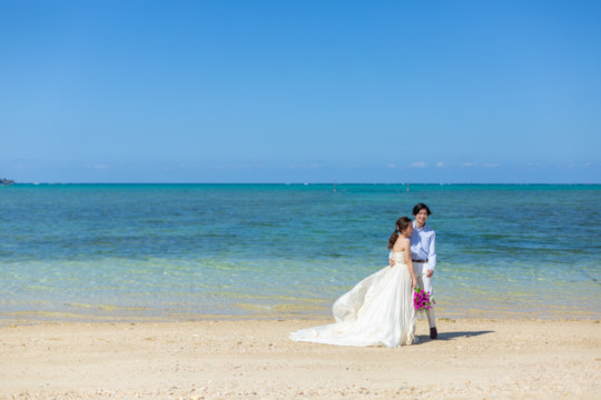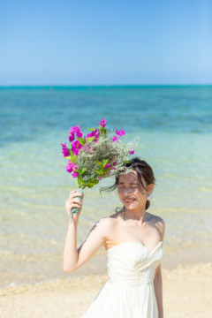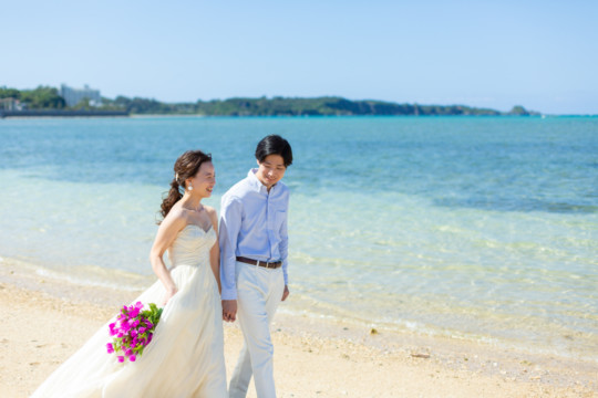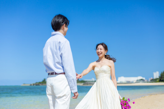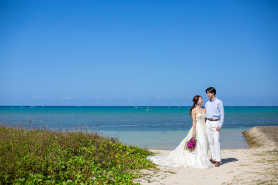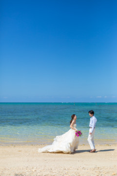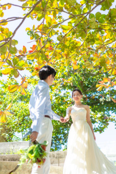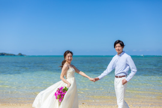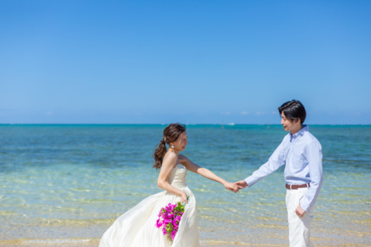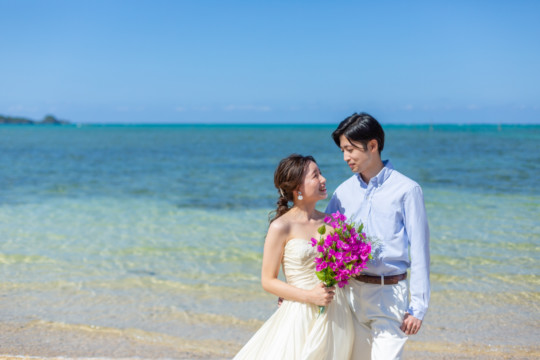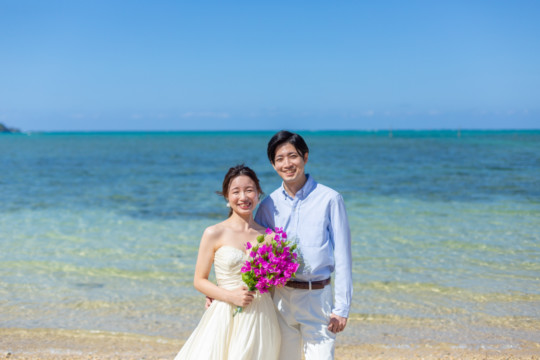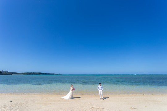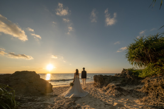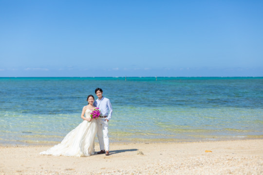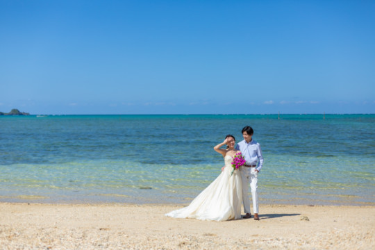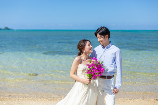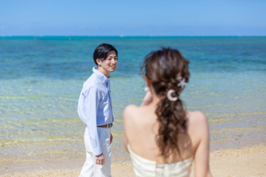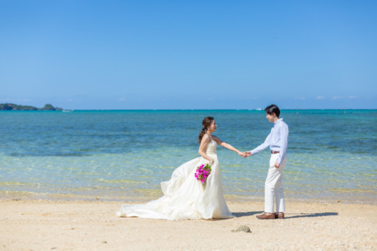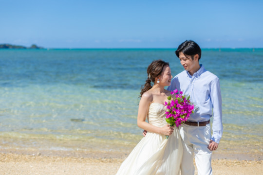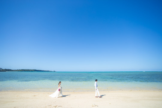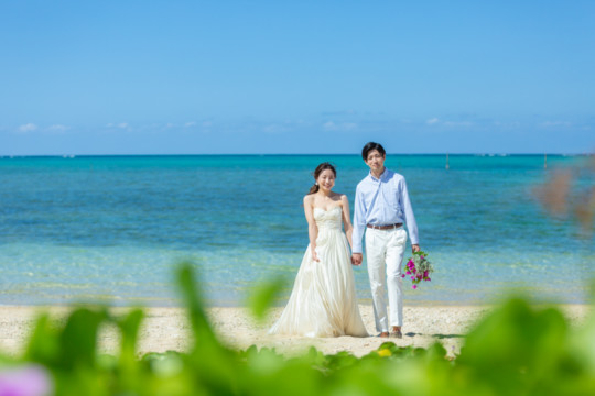 綺麗な沖縄の風景と、幸せそうなおふたりのフォトウェディングの模様をご覧いただけます。
