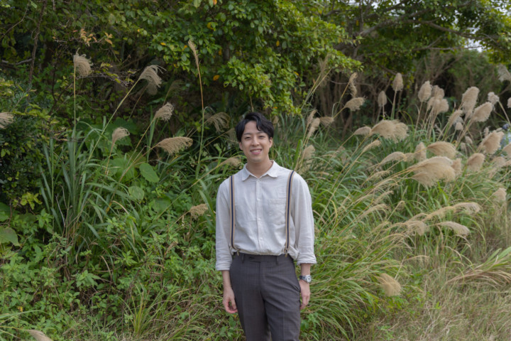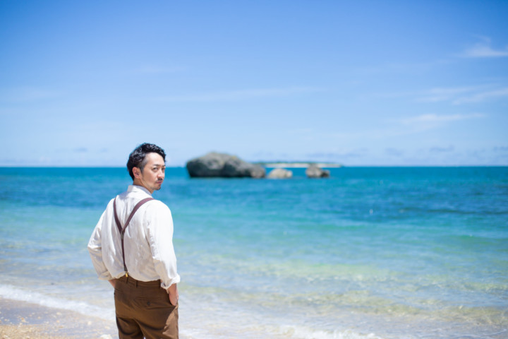 photo studio ouchiにはたくさんのサスペンダーがありますので、たくさん試してみるのも良いですね♪それにしても沖縄の青い海に、白シャツが眩しく、とっても爽やかです。