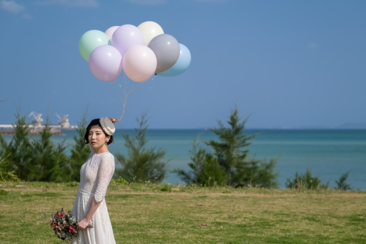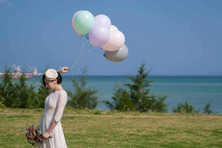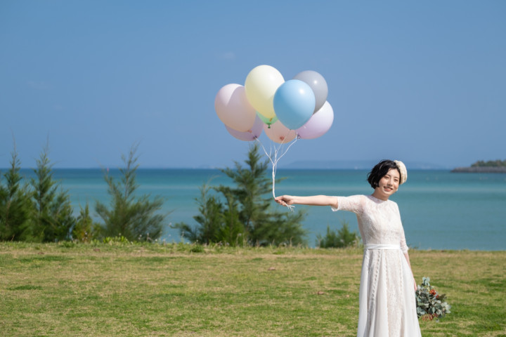 沖縄フォトウェディング(海・バルーン・グリーンイメージ)
