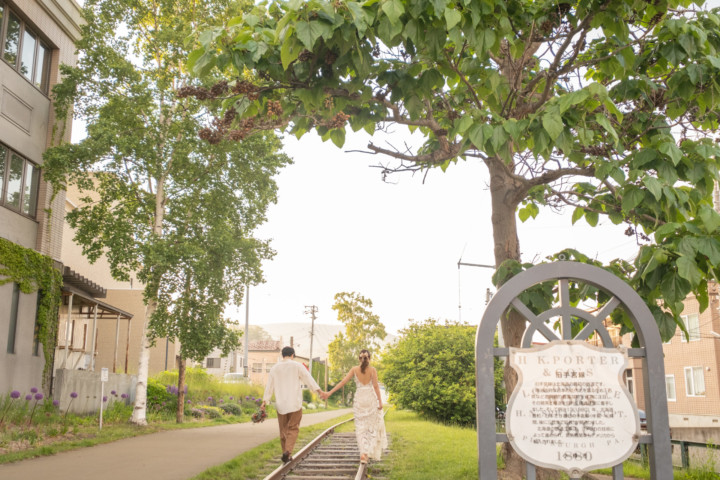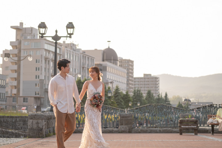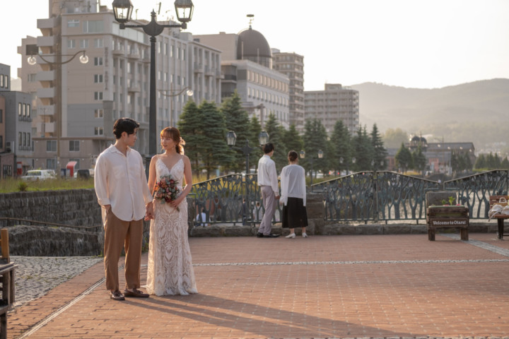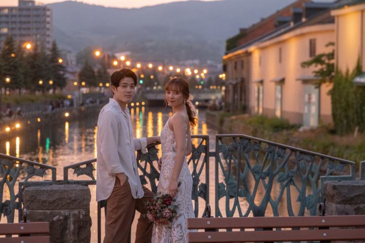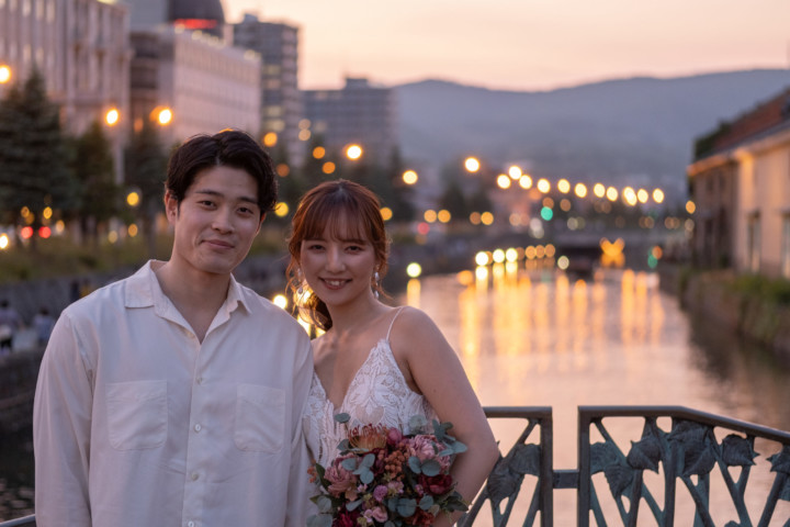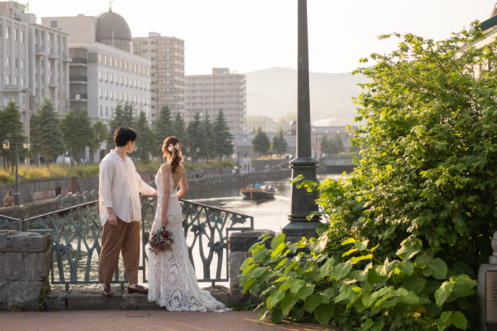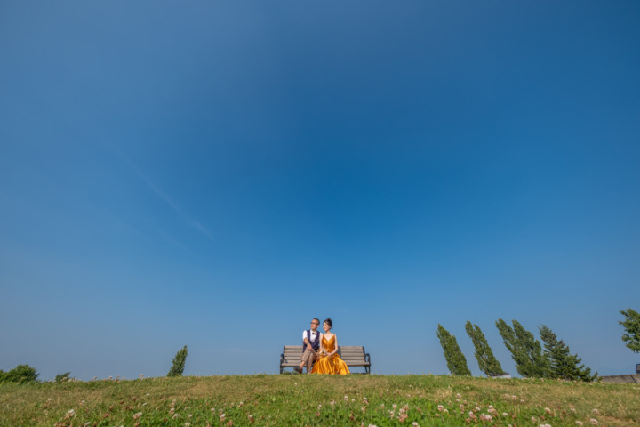 第1回目の北海道を旅するフォトウェディングモニター撮影は、爽やかな緑と港町の夕焼けをイメージして「モエレ沼公園」と「小樽運河でのサンセット」で行いました。