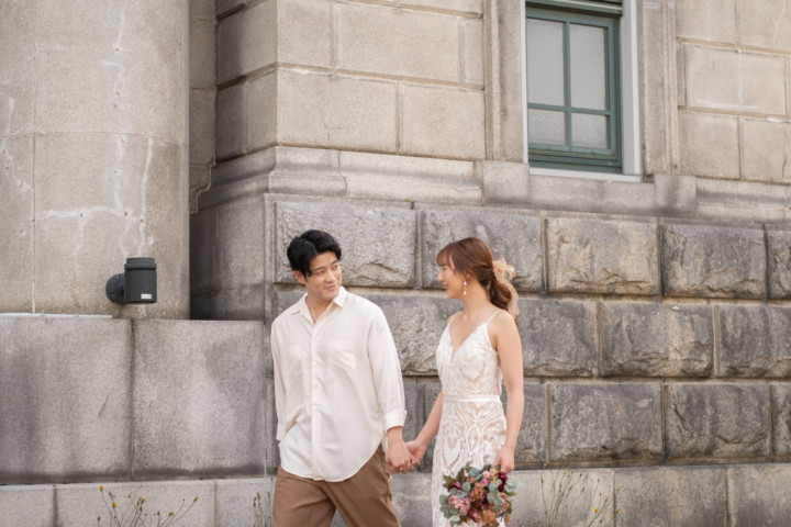 広大な敷地面積のある中島公園では、橋や池、イチョウ並木、豊平館があり様々なシュチュエーションの中のんびりとお散歩をしながらフォトウェディング撮影を楽しみました。