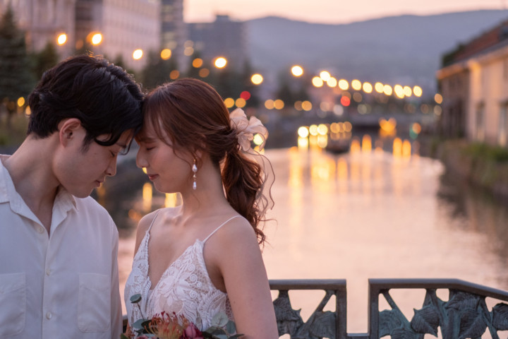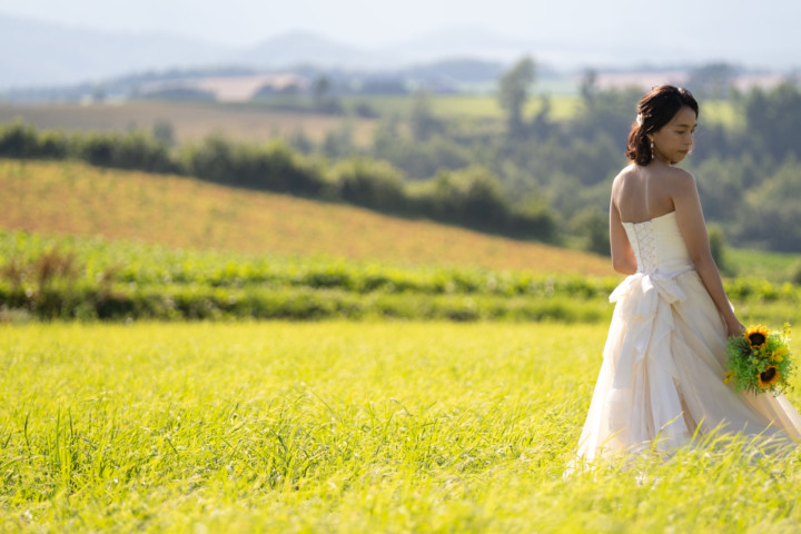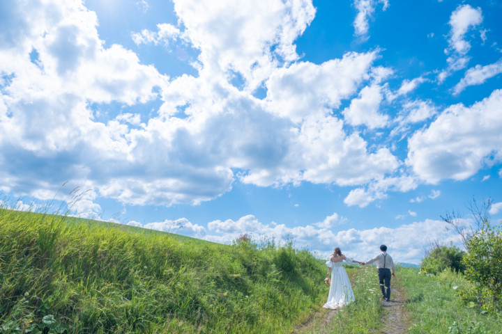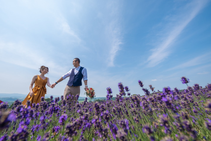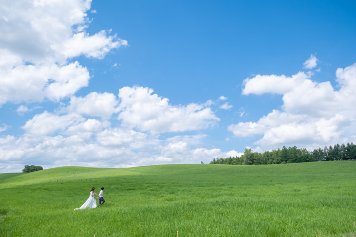 北海道出身の私が、パッと思いつくフォトウェディングに相応しいロケーションは、青い空の元に広がる一面の草原、高い空にまっすぐ伸びる白樺の森、爽やかな香り広がるラベンダー畑、異国情緒あふれる小樽運河の景観などが思い浮かびます。