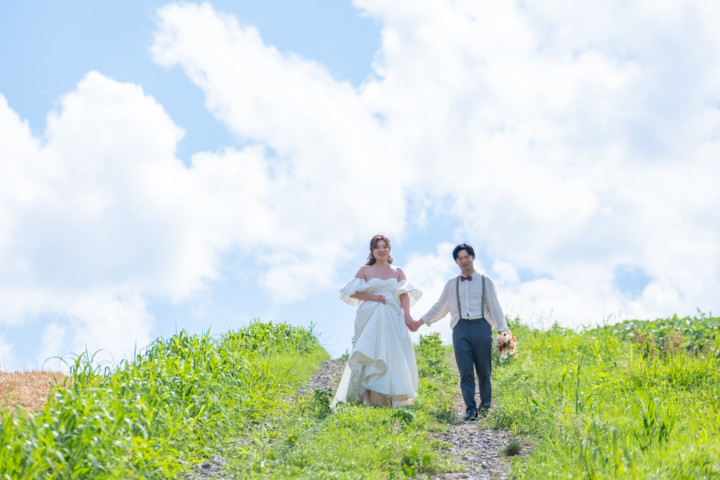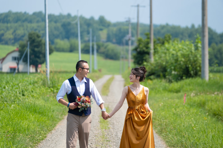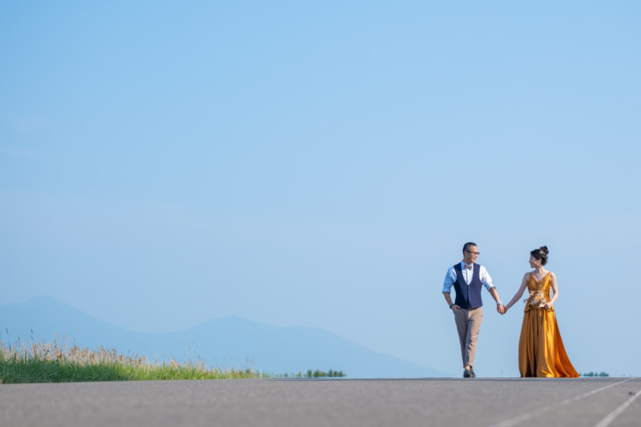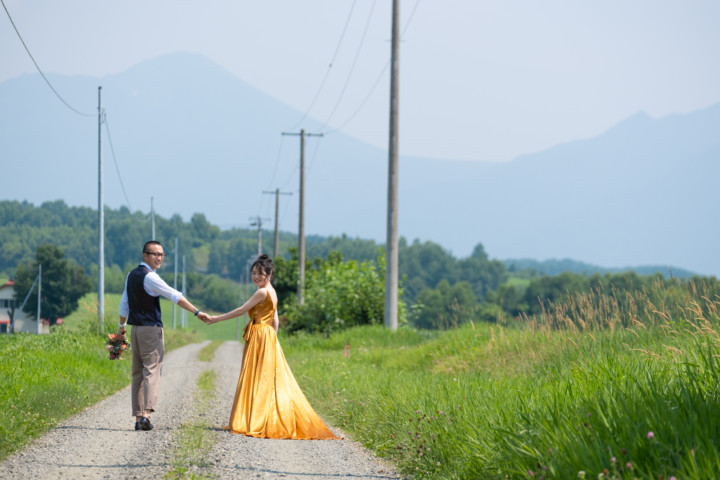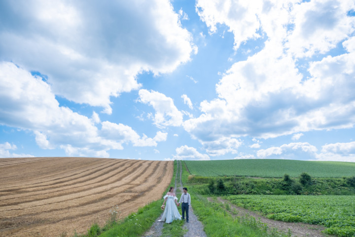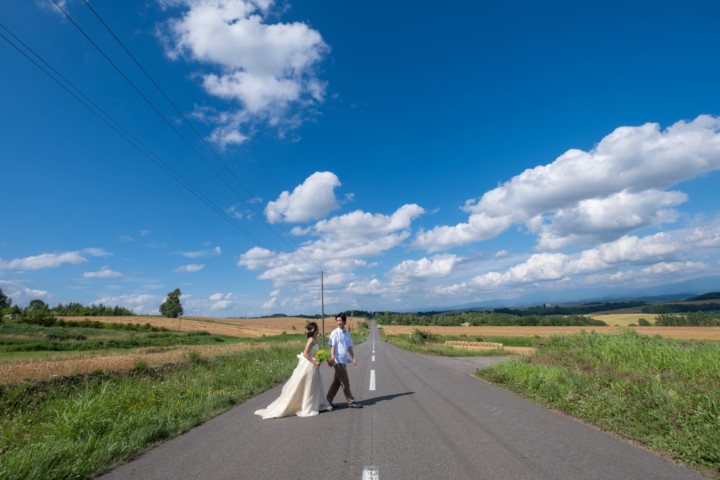 たまたま通りかかった道や草原、普段の撮影ならスルーしてしまうような場所が北海道フォトウエディングでは最高のフォトスポットとなるのです♪