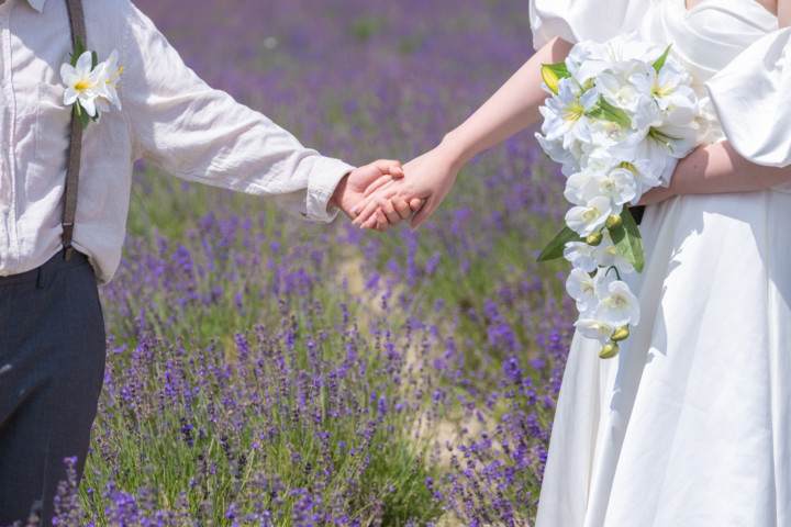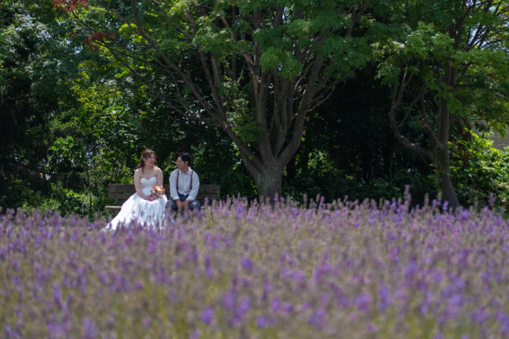 第4回フォトウエディングモニター撮影(7月ラベンダー、お花畑、緑)
